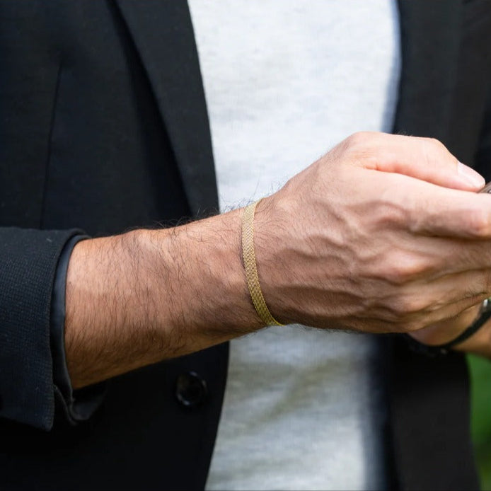 Fundimos Oro 18k sobre titanio para crear un blindaje con el brillo y la elegancia del Oro Italiano.